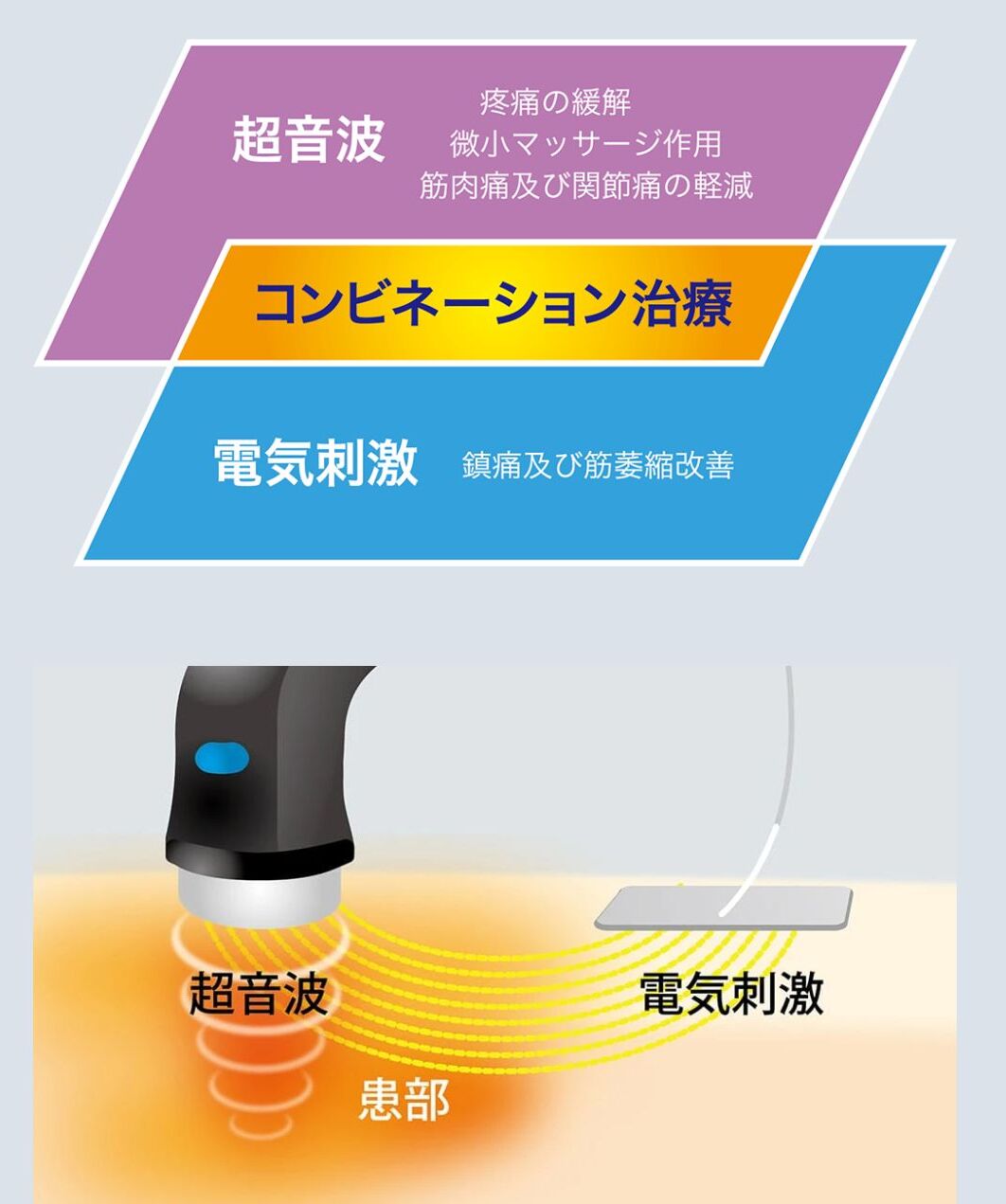 当院では超音波と電気刺激を組み合わせた「超音波コンビネーション治療」を導入。