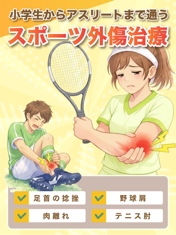 ぎっくり腰、肩こり、腰痛、骨折、捻挫、肉離れ、五十肩、テニス肘、野球肘、膝関節痛、腱鞘炎、神経痛などの一つでも当てはまる症状があればオススメです!